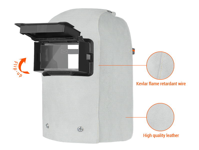 Made of leather and can prevent high temperature and heat. Effectively blocks arc light. It is soft and lightweight, brings higher wearing comfort. With the shawl design, it protects neck against splash.